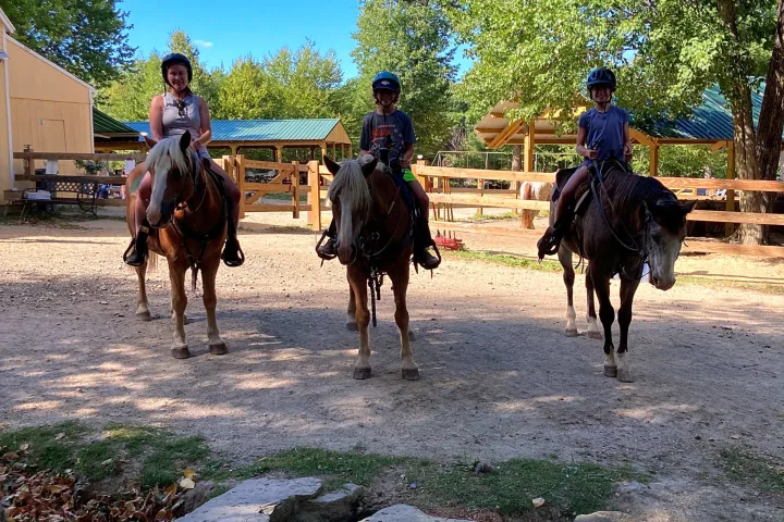 Private lessons may be structured to your specific skill level and needs because they offer one-on-one individualized attention. Semi-Private lessons are for only two riders who want to ride together, and may be a nice way for beginner family members or friends to take lessons together but still be able to have the instructor working one-on-one with both riders. Please book a private or semi-private lesson if you are new to riding. Because group lessons are for more experienced riders, they may be overwhelming for beginners, and we want everyone to have a safe and positive experience with horseback riding.